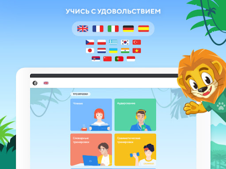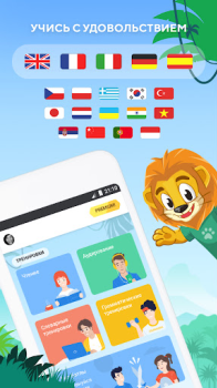 LinguaLeo – это мобильное приложение которое помогает в изучении иностранных языков. Обучение происходит в игровом формате, есть тренер-маскот львенок Лео, который поддерживает пользователя и дает ему полезные рекомендации. Тип приложения: комплексный тренажер. Для изучения доступно около двух десятков распространенных в мире языков.