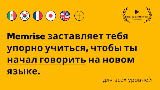 Memrise – это мобильное приложение, помогающее в изучении лексики иностранного языка. В основе лежит некая мнемотехника, позволяющая запоминать слова быстро и прочно.