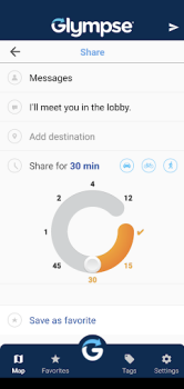 Glympse – приложение для обмена геолокацией в реальном времени. С его помощью можно делиться своим местоположением с друзьями, семьей или коллегами. Данные передаются через интернет, а пользователь устанавливает временные рамки доступа. Скачать Glympse для Android можно бесплатно.