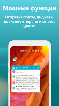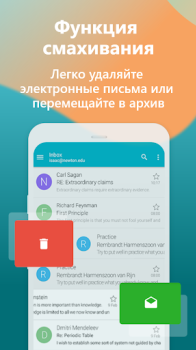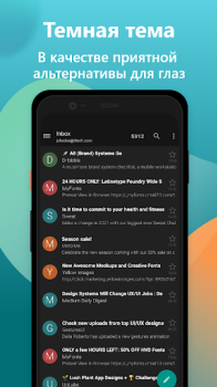 Главная задача Aqua Mail — сделать работу с почтой понятной и удобной. Все функции собраны в одном месте, и доступны прямо с главного экрана. Приложение поддерживает несколько учетных записей и позволяет быстро переключаться между ними.