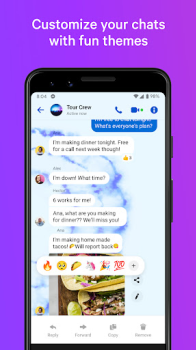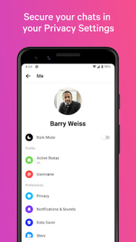 Популярный мессенджер Facebook предоставляет пользователю возможность быстрого общения с другими пользователями используя как стандартный набор функций: звонки, текстовые и голосовые сообщения, так и дополнительные возможности. Клиент приложения может воспользоваться быстрыми настройками для получения уведомлений, вкладывать в переписку различные файлы различного расширения, а для мгновенной реакции использовать широкий набор стикеров. Создание личного архива позволит сохранить самую важную переписку, а нежелательные контакты легко блокируются. Создание чата групповой переписки займет несколько секунд, а закрепление необходимой информации позволит не потерять нить разговора. Мессенджер оптимально разработан для мобильных устройств и быстро функционирует даже при слабом интернет - соединении и позволяет оставаться на связи в любое время суток.