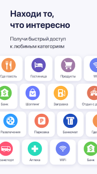 Также пользователи имеют возможность воспользоваться поиском. В поиске просто необходимо указать то что вас интересует и приложение сразу покажет ближайшие места где это можно найти. В приложении также имеется навигация с помощью которой всегда можно узнать какое расстояние осталось пройти или проехать до интересующей точки. Навигация не очень хорошо проработана, но в целом для решения основных задач её обычно хватает.