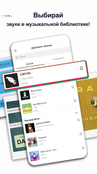 Приложение предлагает доступ к огромной библиотеке музыкальных треков и звуковых эффектов. Пользователи могут находить популярные композиции или загружать собственные аудиофайлы с телефона или планшета. Но это должны быть оригиналы — настоящие композиции пользователя, которые не нарушают авторские права.