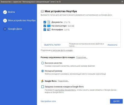 Первой и самой значимой возможностью программы (помимо базовых функций хранилища) является интеграция в экосистему Google. Помимо основной синхронизации с остальными приложениями компании, «Диск» даёт возможность синхронизировать все файлы на подключенных устройствах, будь то мобильные телефоны или компьютеры и ноутбуки. Также, для компьютеров и ноутбуков предусмотрена отдельная функция, введённая в в 2017 году: она позволяет создать резервную копию устройства, выгружая готовый образ непосредственно в облако.