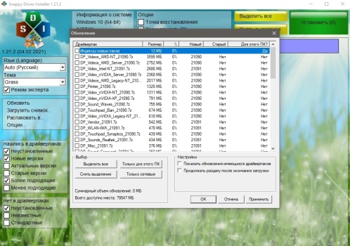 Snappy Driver Installer (SDI) — это программа для автоматического поиска и установки драйверов устройств и стандартов, установленных на вашем компьютере. Это позволит вам обновить драйверы до последних версий за несколько простых шагов, тем самым гарантируя пользователю, что он использует наиболее оптимизированные и функциональные выпуски, выпущенные для его устройств. Программа предназначена как для начинающих, так и для немного более продвинутых пользователей. Стандартно запускается базовый режим, но одним нажатием кнопки мы можем активировать экспертный режим, который дает доступ к дополнительным возможностям, в основном в области критериев поиска драйверов.