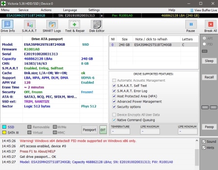 Victoria HDD разработана специально для качественной проверки жесткого диска и исправление поврежденных секторов. Разработчики вложили в функционал программы возможность ускорения производительности персонального устройства и восстановления стабильности работы установленных приложений и всей операционной системы в целом. В процессе работы программа заменяет битые сектора накопителя резервными. Пользователь может выбрать предпочтительный рабочий режим софта: API с использованием инструментов самой операционной системы или автономный вариант PIO через порты. Диагностика диска может проходить как с восстановлением неисправных участков, так и без активного вмешательства, также можно осуществить перезапись неисправных участков при помощи полного форматирования.
