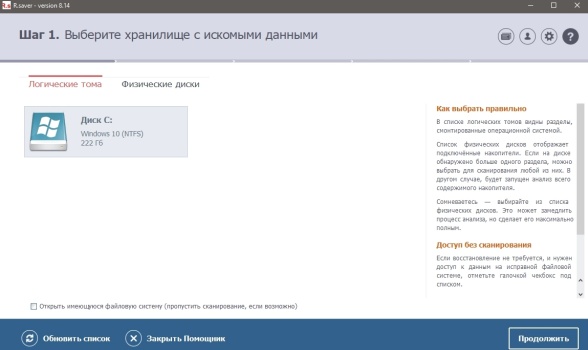 R.Saver— бесплатное программное обеспечение для восстановления данных, предназначенное исключительно для домашнего использования. Программа полезна в случаях, когда пользователь случайно удалил нужный файл, либо последний был поврежден. Софт дает возможность восстановления файловых систем NTFS, FAT и ExFAT. Стоит учесть тот факт, что утерянную информацию можно восстановить только с носителя без дефектов.