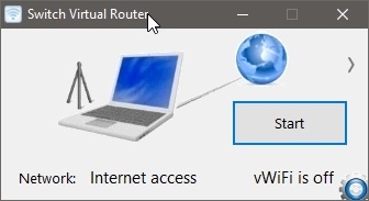 Switch Virtual Router — очень простой в использовании инструмент. Количество предлагаемых вариантов конфигурации сведено к минимуму. Пользователь может только выбрать имя для своей точки доступа, пароль и общее соединение. По умолчанию передача шифруется через WPA2.